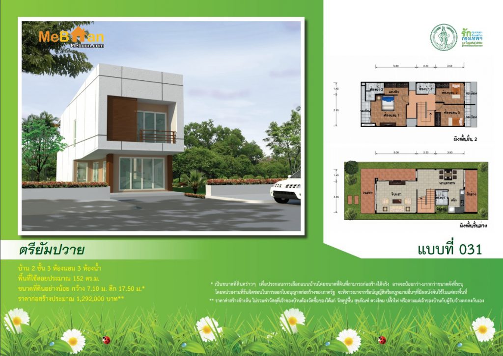 ดาวน์โหลดแบบบ้านสองชั้น “ตรียัมปวาย” แบบบ้านฟรี บ้านหน้าแคบ แบบบ้านสองชั้นราคาไม่เกิน 1.5 ล้านบาท