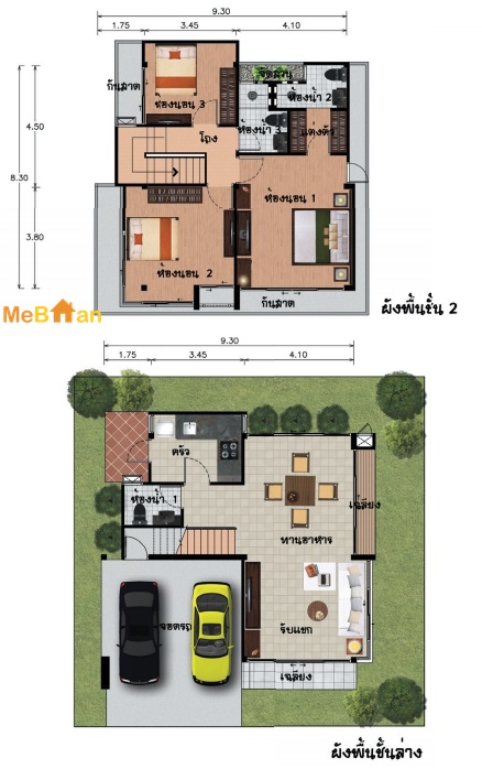บ้าน 2 ชั้น 3 ห้องนอน 3 ห้องน้ำ