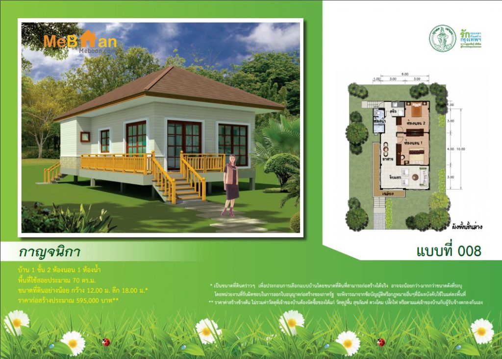 ดาวน์โหลดแบบบ้านชั้นเดียว “กาญจนิกา” แบบบ้านฟรี แบบบ้านชั้นเดียวราคาไม่เกิน 1 ล้านบาท