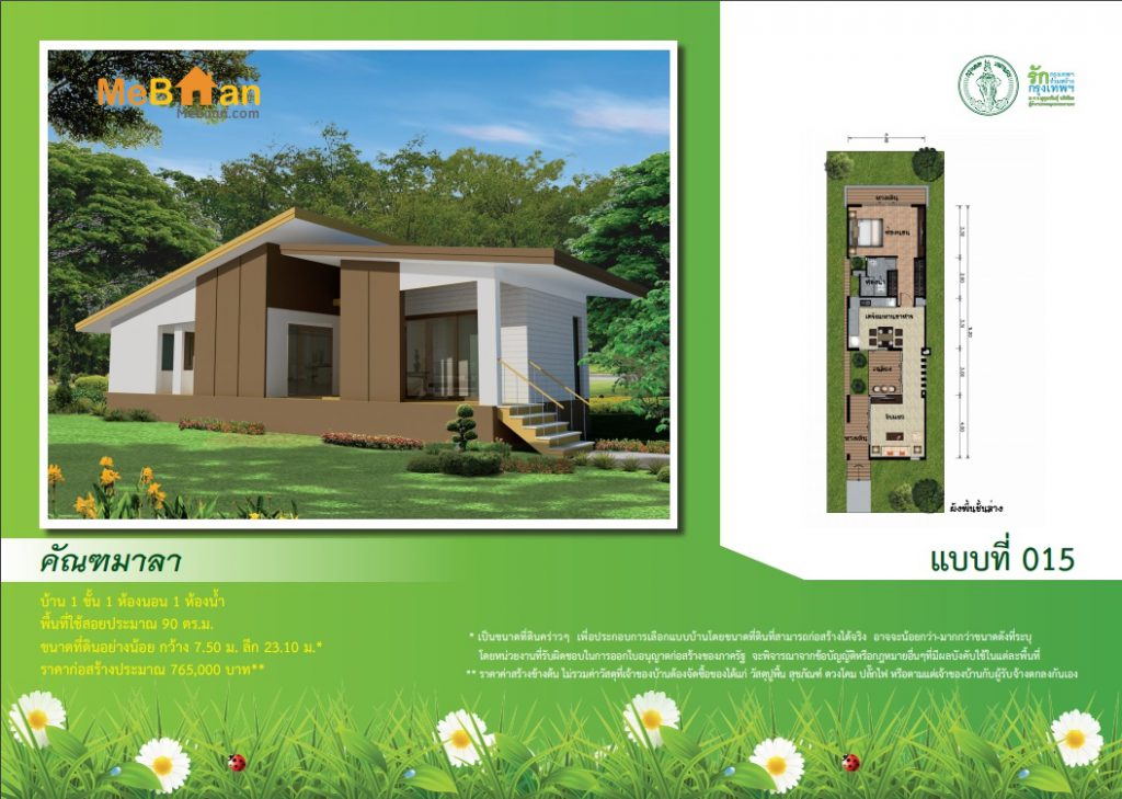 ดาวน์โหลดแบบบ้านชั้นเดียว “คัณฑมาลา” แบบบ้านฟรี บ้านหน้าแคบ แบบบ้านชั้นเดียวราคาไม่เกิน 1 ล้านบาท