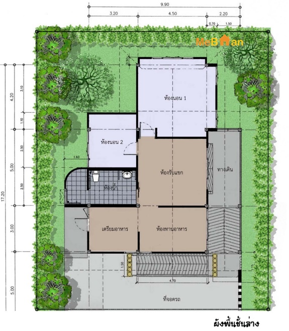 บ้าน 1 ชั้น 2 ห้องนอน 2 ห้องน้ำ