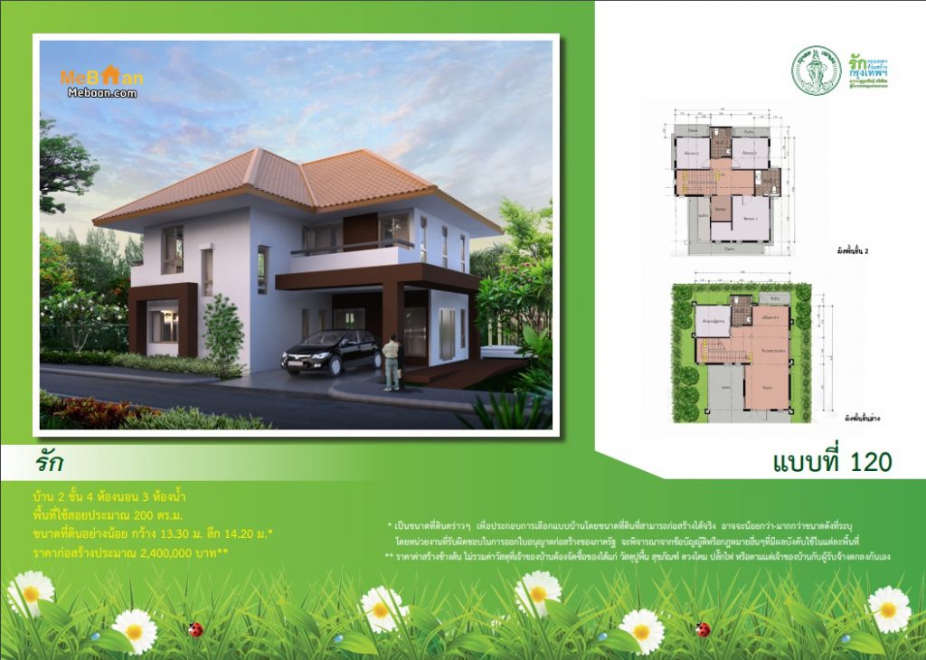 ซึ่งแบบบ้านนี้ได้ทำการแจกฟรีโดยแบบบ้านนี้จะเน้นการดีไซน์ สำหรับคนพิการและผู้สูงอายุ โดยมีทางลาดเอียงเข้าบ้าน เพื่อสะดวกต่อการเดินหรือการใช้รถเข็นวีลแชร์รายละเอียดบ้านมีดังต่อไปนี้