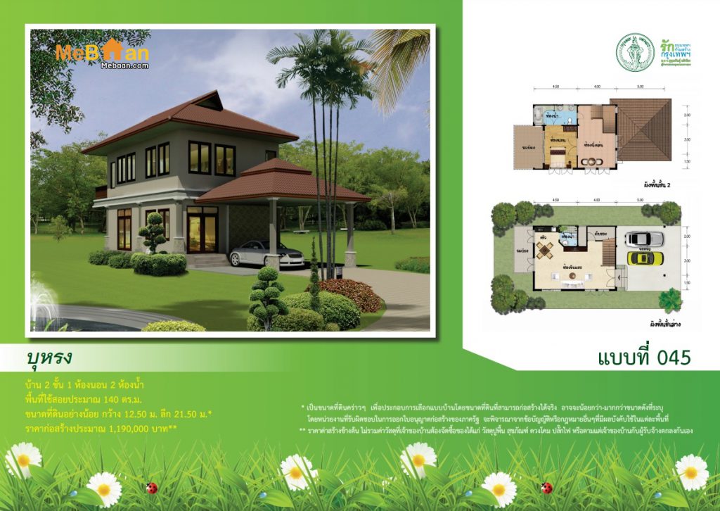 ดาวน์โหลดแบบบ้านสองชั้น “บุหรง” แบบบ้านฟรี แบบบ้านสองชั้นราคาไม่เกิน 1.2 ล้านบาท