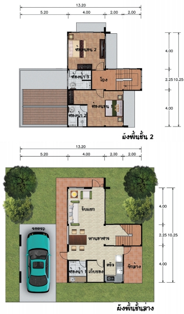 บ้าน 2 ชั้น 2 ห้องนอน 3 ห้องน้ำ