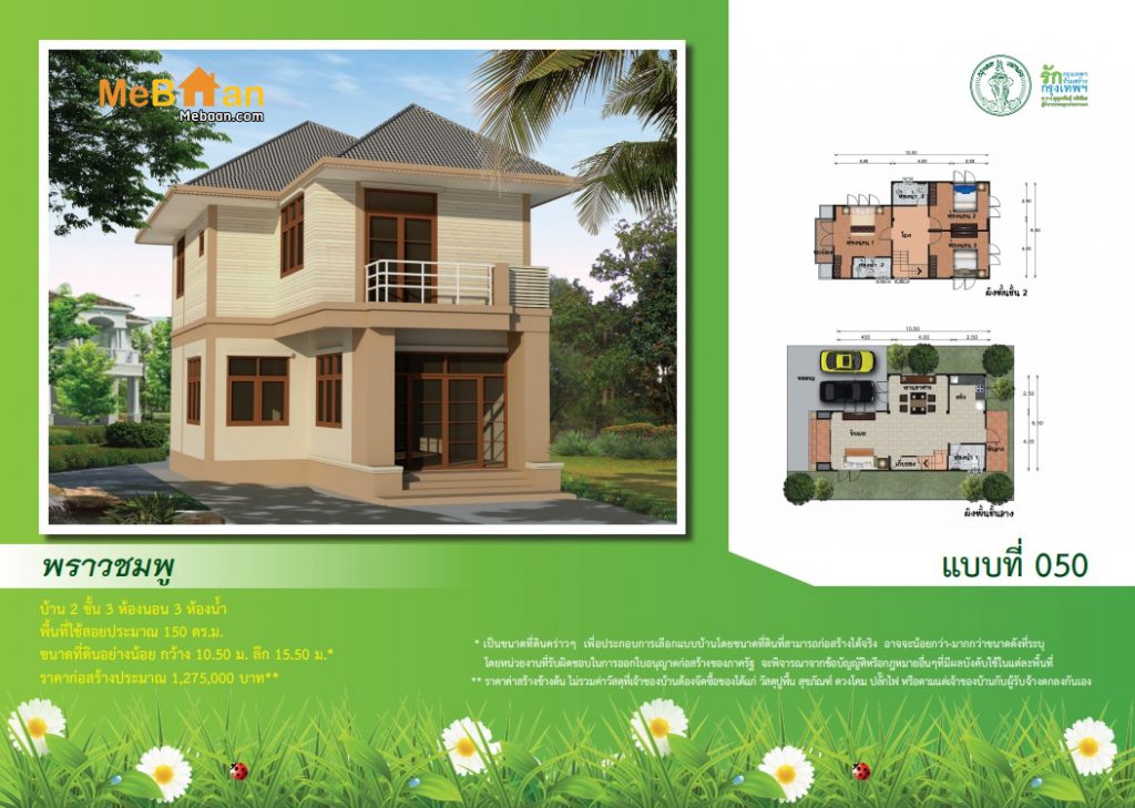 ดาวน์โหลดแบบบ้านสองชั้น “พราวชมพู” แบบบ้านฟรี แบบบ้านสองชั้นราคาไม่เกิน 1.5 ล้านบาท