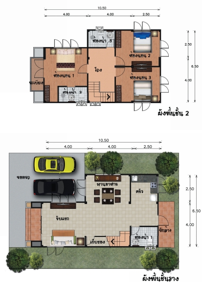 บ้าน 2 ชั้น 3 ห้องนอน 3 ห้องน้ำ