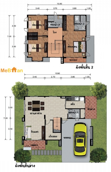 บ้าน 2 ชั้น 3 ห้องนอน 3 ห้องน้ำ
