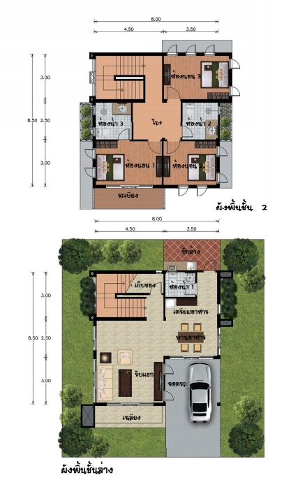 บ้าน 2 ชั้น 3 ห้องนอน 3 ห้องน้ำ
