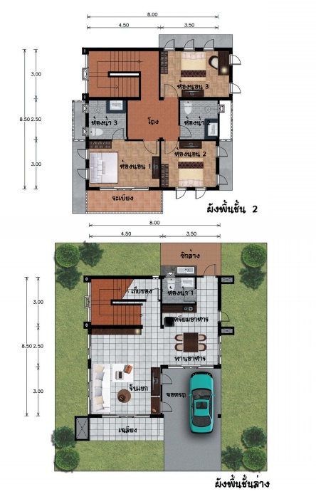 บ้าน 2 ชั้น 3 ห้องนอน 3 ห้องน้ำ