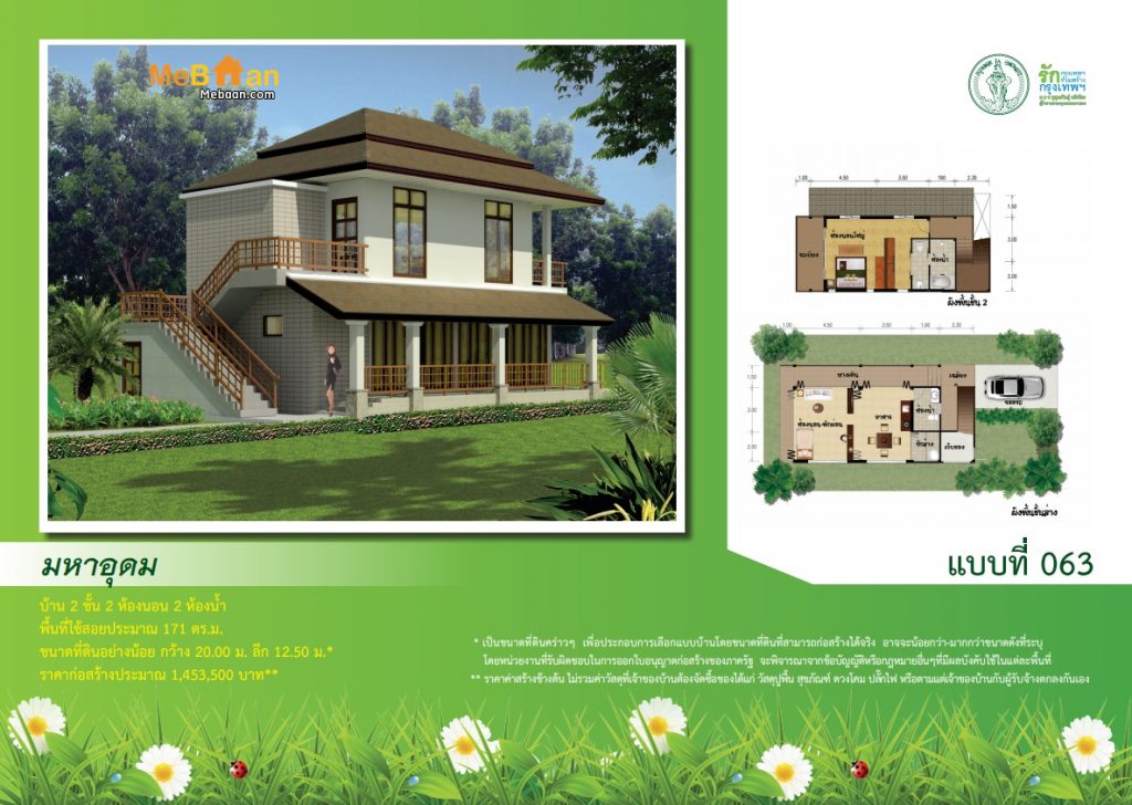 ดาวน์โหลดแบบบ้านสองชั้น “มหาอุดม” แบบบ้านฟรี แบบบ้านสองชั้นราคาไม่เกิน 1.5 ล้านบาท