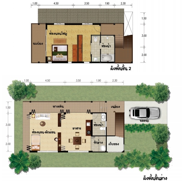 บ้าน 2 ชั้น 2 ห้องนอน 2 ห้องน้ำ