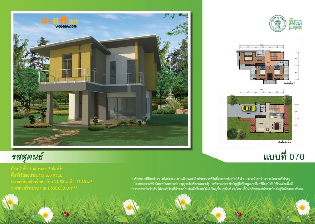 ดาวน์โหลดแบบบ้านสองชั้น “รสสุคนธ์” แบบบ้านฟรี