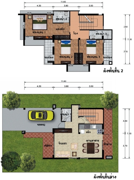 บ้าน 2 ชั้น 3 ห้องนอน 3 ห้องน้ำ