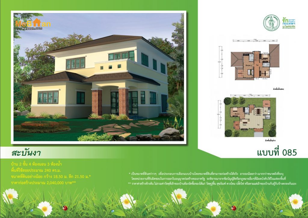 ดาวน์โหลดแบบบ้านสองชั้น “สะบันงา” แบบบ้านฟรี แบบบ้านสองชั้นราคาไม่เกิน 2.5 ล้านบาท