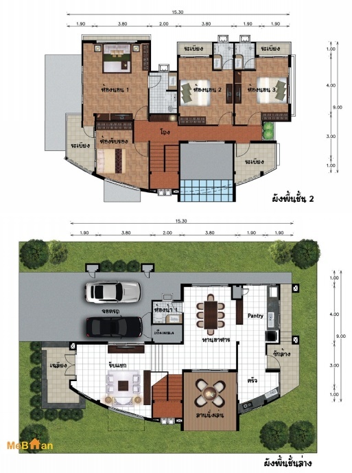 บ้าน 2 ชั้น 3 ห้องนอน 4 ห้องน้ำ