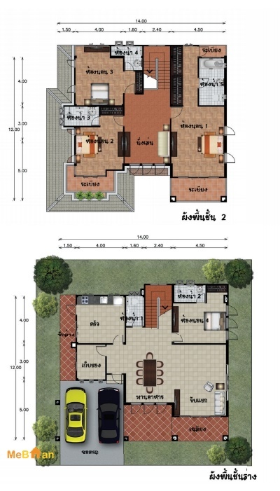 บ้าน 2 ชั้น 3 ห้องนอน 5 ห้องน้ำ