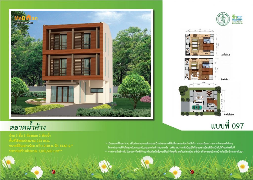 ดาวน์โหลดแบบบ้านสามชั้น “หยาดน้ำค้าง” แบบบ้านฟรี แบบบ้านสามชั้นราคาไม่เกิน 2 ล้านบาท