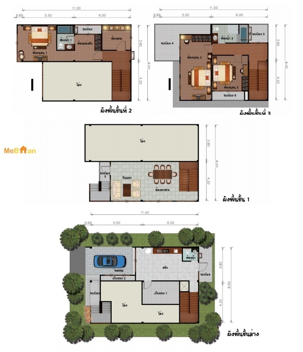 บ้าน 3 ชั้น 3 ห้องนอน 3 ห้องน้ำ