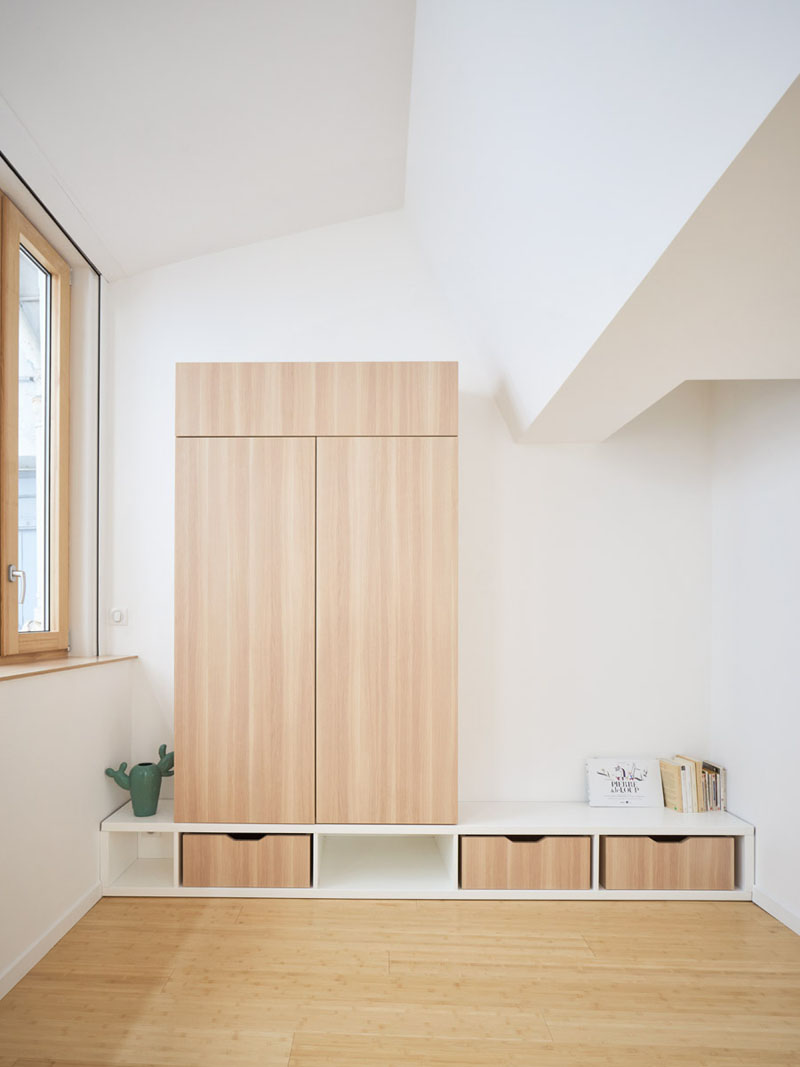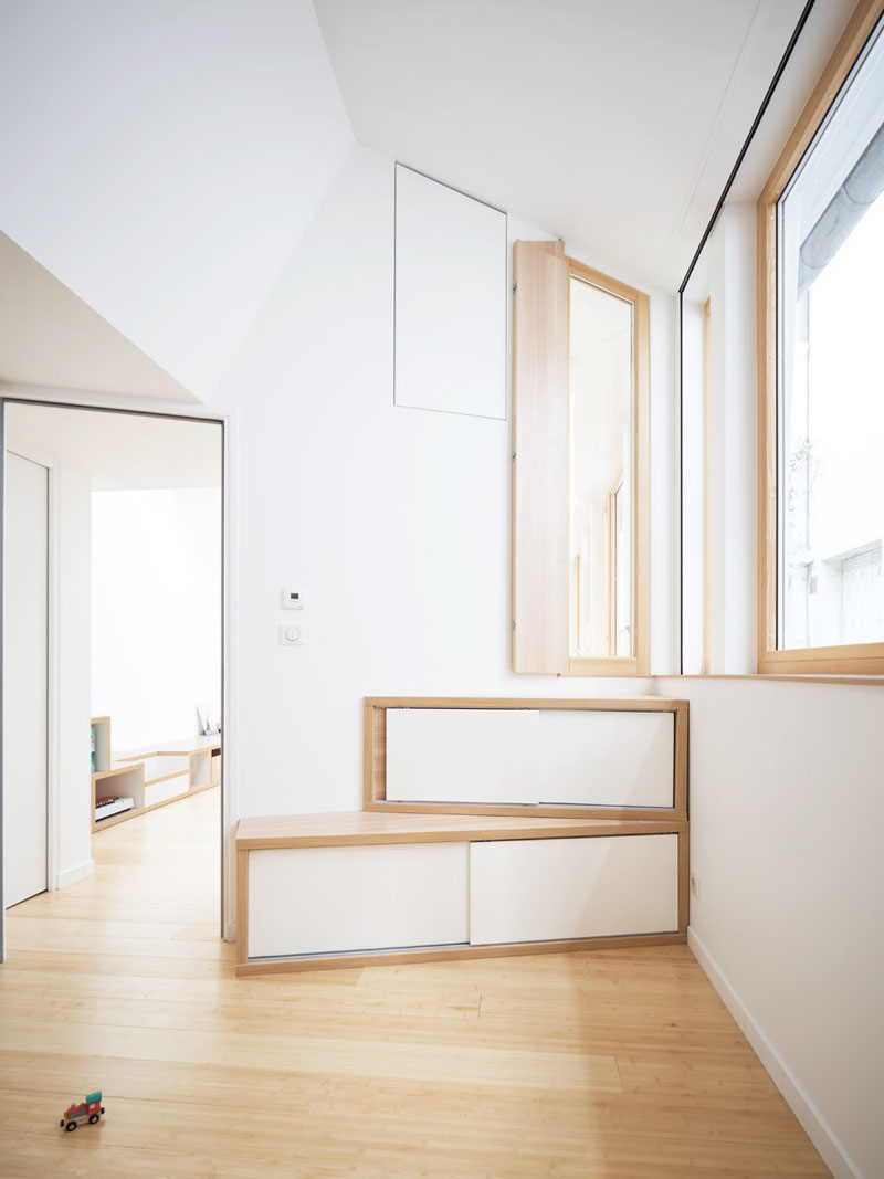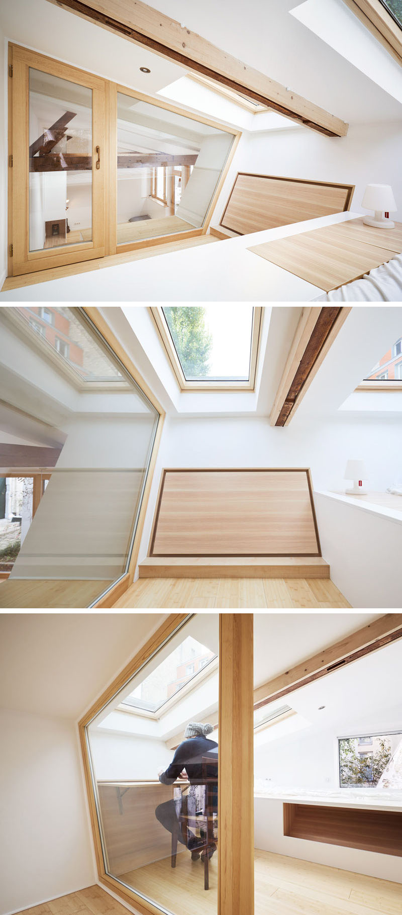 บริเวณห้องใต้หลังคาเป็นที่ตั้งของพื้นที่ทำงานขนาดเล็กล้อมรอบด้วยสกายไลท์เพื่อให้พื้นที่มีความสว่าง มีโต๊ะพับเก็บได้และพื้นที่ขนาดใหญ่พอที่จะนอนหลับได้สองคน