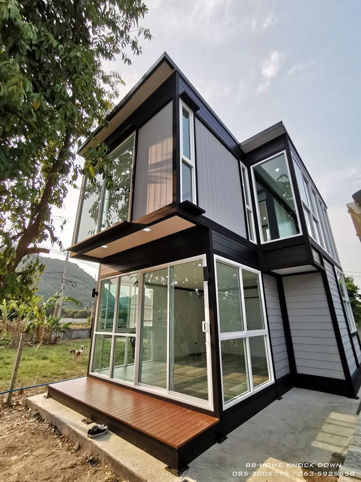 บ้านโครงสร้างเหล็ก 2 ชั้น หลังนี้เขาจะมาในรูปแบบของบ้านพักตากอากาศ ซึ่งในเรื่องของพื้นที่ใช้สอยนั้นถือว่ามีความคุ้มค่าเนอย่างมาก อีกทั้งในเรื่องของโครงสร้างบ้านก็เป็นเหล็กทั้งหลัง และยังทำออกมาในสไตล์โมเดิร์นได้อย่างดีเยี่ยม