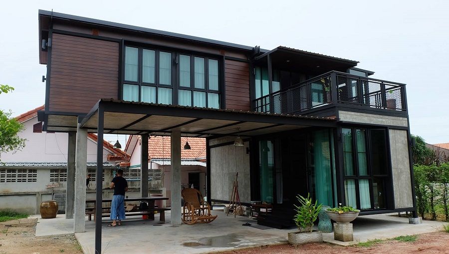 บ้านหลังนี้ก็เป็นบ้านโครงสร้างเหล็กที่มาในรูปแบบของบ้าน 2 ชั้น อีกเช่นเคย ซึ่งบ้านหลังนี้จะมีความโดดเด่นอยู่ที่การใช้เหล็กเป็นส่วนประกอบสำคัญในการทำโครงของบ้านขึ้นมา ซึ่งก็แน่นอนว่ามีความแข็งแรงอย่างแน่นอน อีกทั้งบ้านหลังนี้ยังมีความเป็นสไตล์โมเดิร์นที่ผสมผสานกับสไตล์ลอฟท์ได้อย่างลงตัว ทำให้บ้านหลังนี้ดูมีความเป็นเอกลักษณ์มากยิ่งขึ้น แถมยังมีสระว่ายน้ำสุดน่ารักอยู่ภายในบริเวณบ้าน ซึ่งก็ช่วยเพิ่มความสะดวกสบายให้กับบ้านได้เป็นอย่างดี