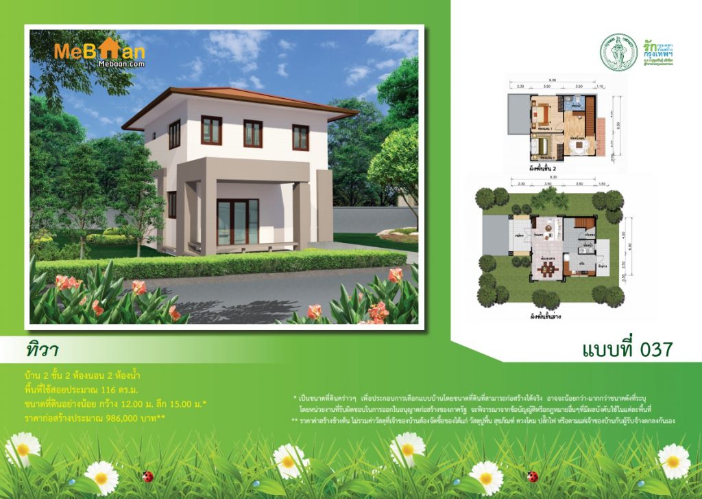 ดาวน์โหลดแบบบ้านสองชั้น “ทิวา” แบบบ้านฟรี แบบบ้านสองชั้นราคาไม่เกิน 1 ล้านบาท