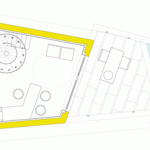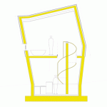 แต่ละนั้นจะมีโครงสร้างที่คล้ายคลึงกันโดยชั้นล่างจะเป็นส่วนของโครงสร้างคอนกรีต ตกแต่งด้วยหินทรายโทนสีเทามองดูคล้ายอิฐมอญ สำหรับชั้นบนนั้นจะ Cladding ด้วยแผ่นอลูมิเนียมคอมโพสิตย้ำลอนห่าง สีเหลืองเจิดจ้า ชั้นบนนั้นจะออกแบบเป็นคานยื่นค่ะ จึงมีขนาดที่พื้นที่ใหญ่กว่าชั้นล่างนั่นเอง ออกแบบให้กลางบ้านชั้นบนมีช่องแสงหรือสกายไล้ท์ช่วยให้พื้นที่กลางบ้านสว่างโปร่งขึ้น และผนังด้านหน้าเป็นกระจกแผงใหญ่ทั้งแผง บ้านทั้งหลังจึงขาวสว่างโพลนขึ้นมาโดดเด่นเห็นแต่ไกลในเวลากลางคืน