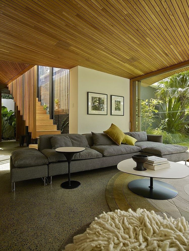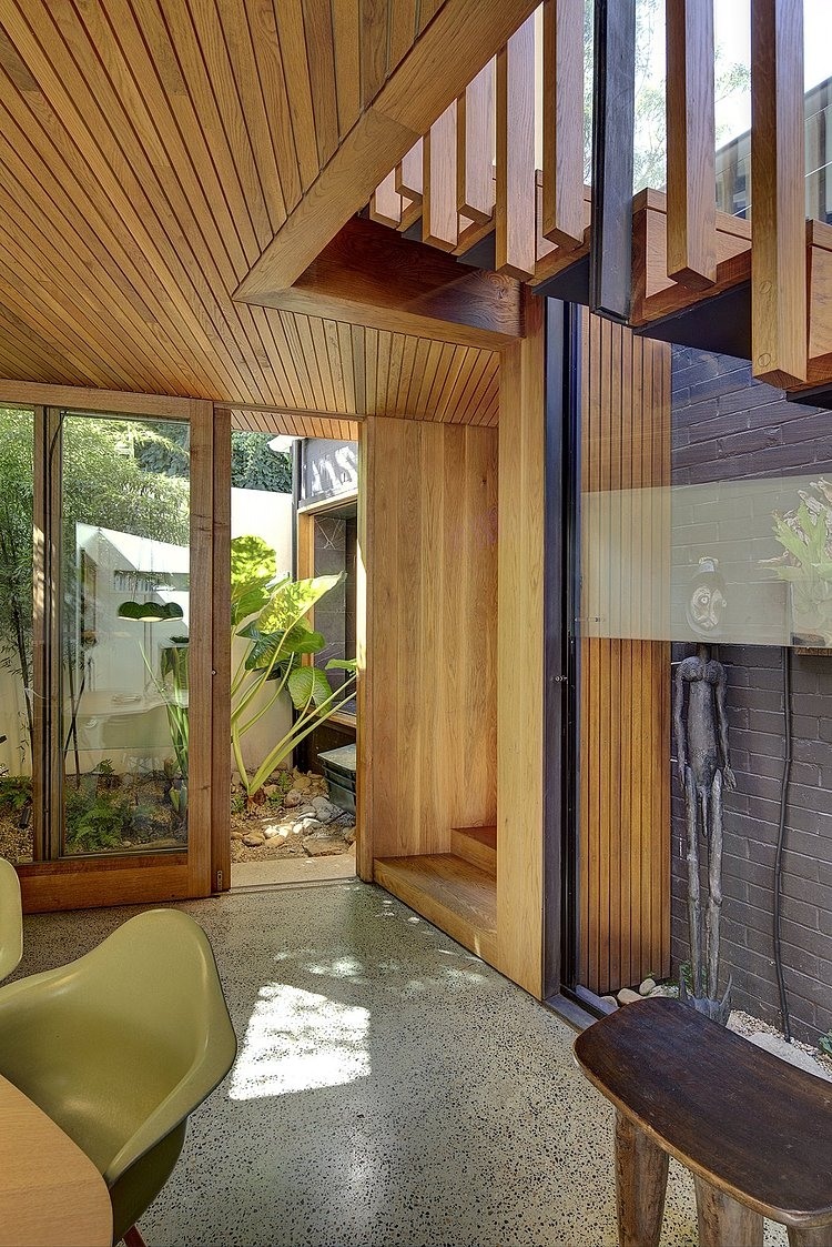 ที่ลอยอยู่เหนือพื้นราบเป็นพื้นที่ที่ถูกจัดแต่งเพื่อใช้เป็นห้องนอนหลัก ห้องน้ำ ห้องสมุด แกลเลอรี่ และห้องทำงาน พื้นที่ชั้นบนถูกออกแบบอย่างประณีตเพื่อคงไว้ซึ่งทิวทัศน์ข้างเคียงและแสงแดด เพื่อให้บ้านมีแสงแดดส่องถึงและระบายอากาศได้ดี ช่วยให้สามารถมองเห็นสวนและทิวทัศน์ของท่าน้ำและสะพาน Anzac