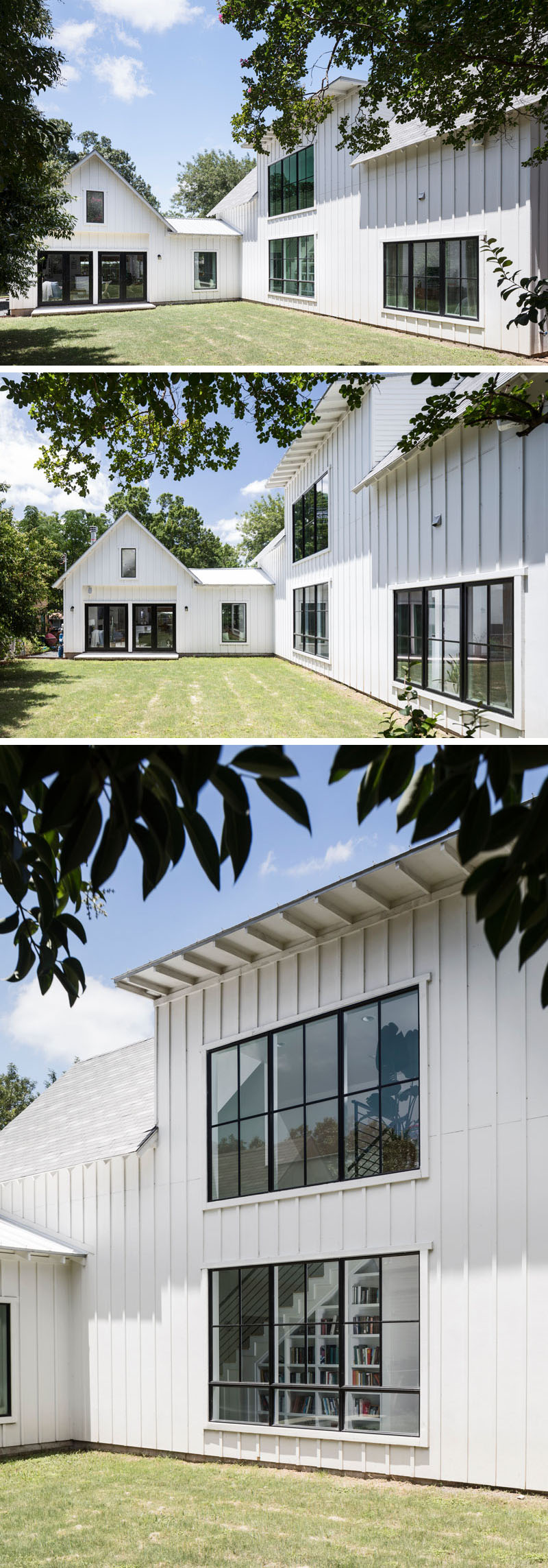 สนามหลังบ้านเป็นพื้นที่โล่งขนาดใหญ่เหมาะแก่การวิ่งเล่น ในขณะที่กรอบหน้าต่างด้านหลังยังสร้างความแตกต่างอให้กับภายนอกสีขาวของตัวบ้าน