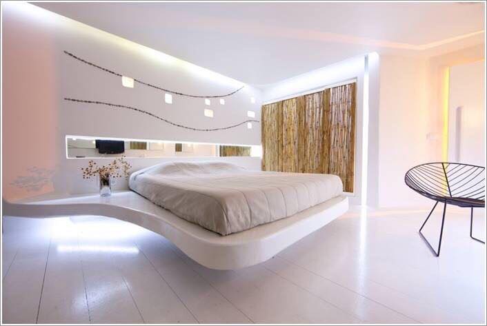 สำหรับไอเดียแรกนี้ก็จะเป็นการทำเตียงลอยตัวที่น่าสนใจมาก ๆ ค่ะ เพราะจะให้ความรู้สึกราวกับว่าคุณนั้นนอนลอยอยู่กลางอากาศเพราะจะไม่มีสิ่งใดเลยที่อยู่ใต้ชั้นเตียงนอกจากความว่างเปล่า ซึ่งก็จะเหมาะกับห้องนอนสไตล์โมเดิร์นมาก ๆ แต่เห็นแบบนี้ในเรื่องของความแข็งแรงนั้นก็ถือว่าทำออกมาได้ดีมาก ๆ