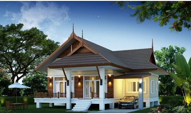 เมื่อครู่เราก็ได้เห็นบ้านล้านนาที่เป็นรูปแบบสองชั้นกันไปบ้างแล้ว แต่แบบบ้านหลังนี้เขาจะเป็นแบบบ้านล้านนาประยุกต์ที่เป็นบ้านชั้นเดียว ซึ่งก็เหมาะกับครอบครัวเล็ก ๆ มาก ๆ เลยค่ะ โดยบ้านหลังนี้เขาจะมีบริเวณของใต้ถุนบ้านเล็ก ๆ เอาไว้ด้วย ในส่วนของเรื่องสไตล์ก็จะยังคงเป็นสไตล์โมเดิร์นเช่นเดิม เพียงแต่ว่าหลังนี้เขาจะมีความเป็นบ้านล้านนนามาที่สุดในทุก ๆ หลังที่เราได้แนะนำไปเพราะตัวหลังคาของเขาจะมีเอกลักษณ์มาก ๆ อีกทั้งยังใช้หน้าต่างและประตูบ้านแบบล้านนาที่สามารถเข้ากับบ้านสไตล์โมเดิร์นได้ลงตัวมาก ๆ อีกทั้งในเรื่องของพื้นที่มช้สอยก็ยังมีเหลือเฟือและยังตกแต่งรั้วบริเวณระเบียงบ้านด้วยไม้ที่สื่อถึงความเป็นล้านนาได้ดีมาก ๆ เลยทีเดียว