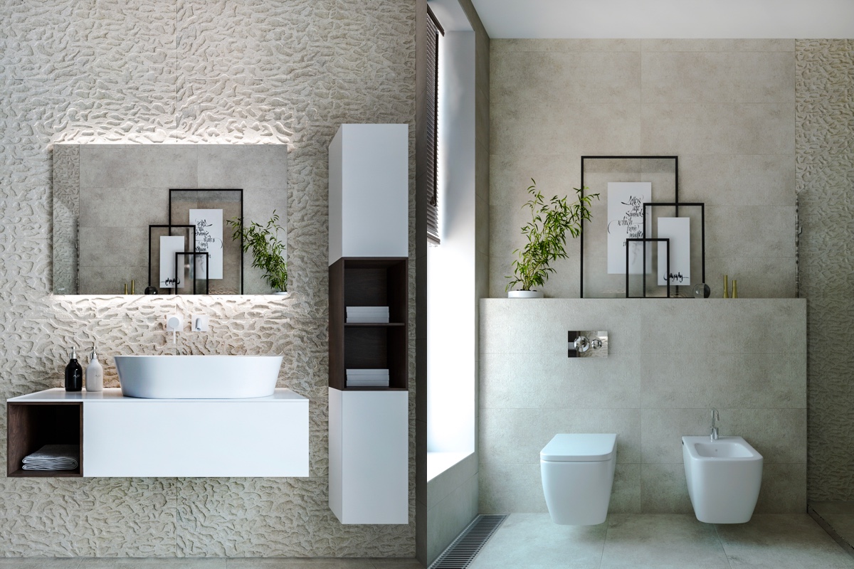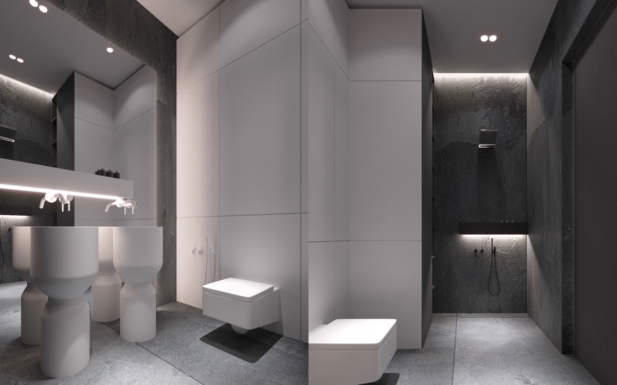 ห้องน้ำสีขาว ห้องน้ำสีเทา