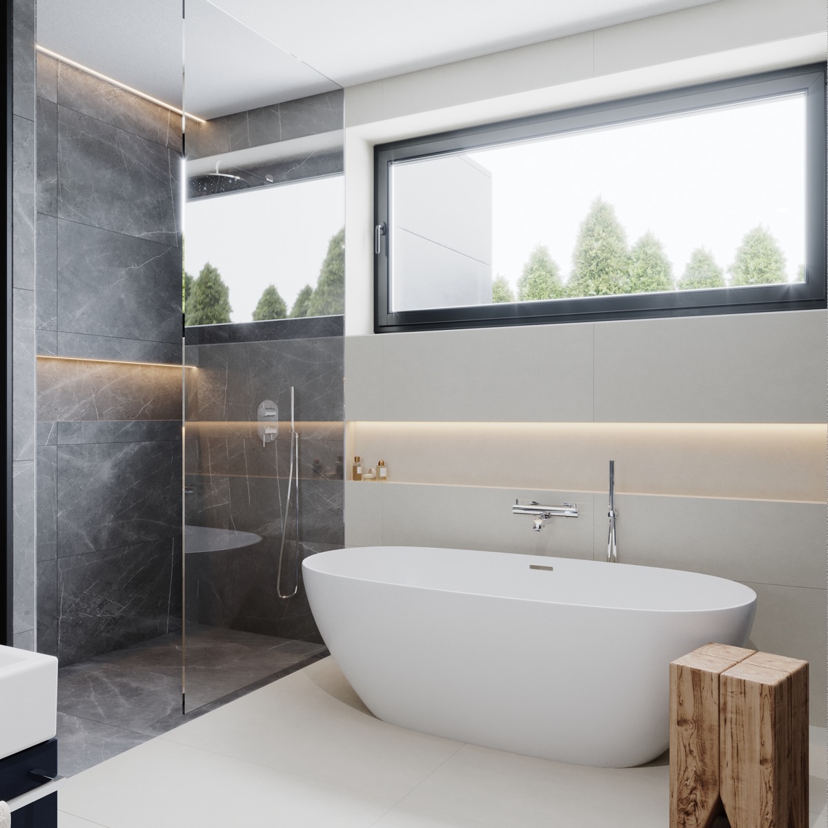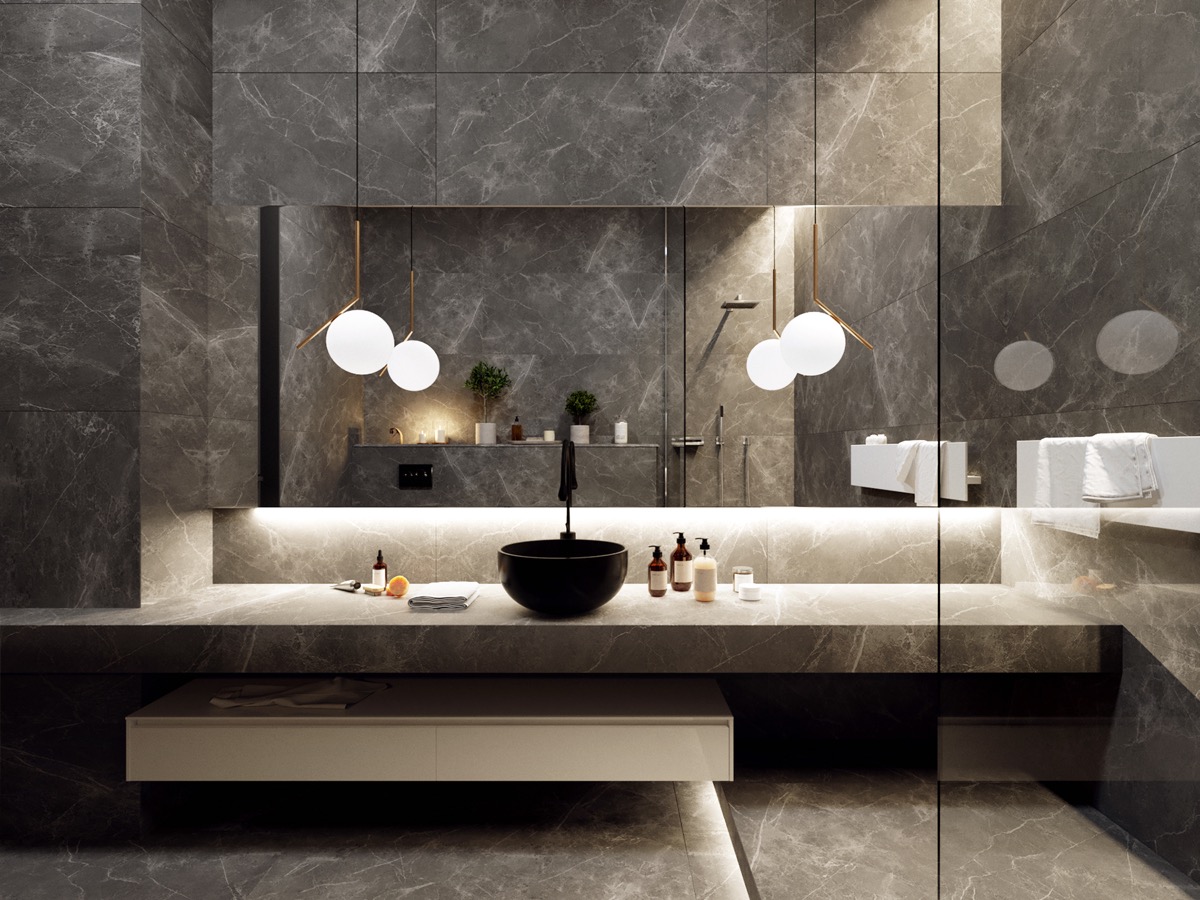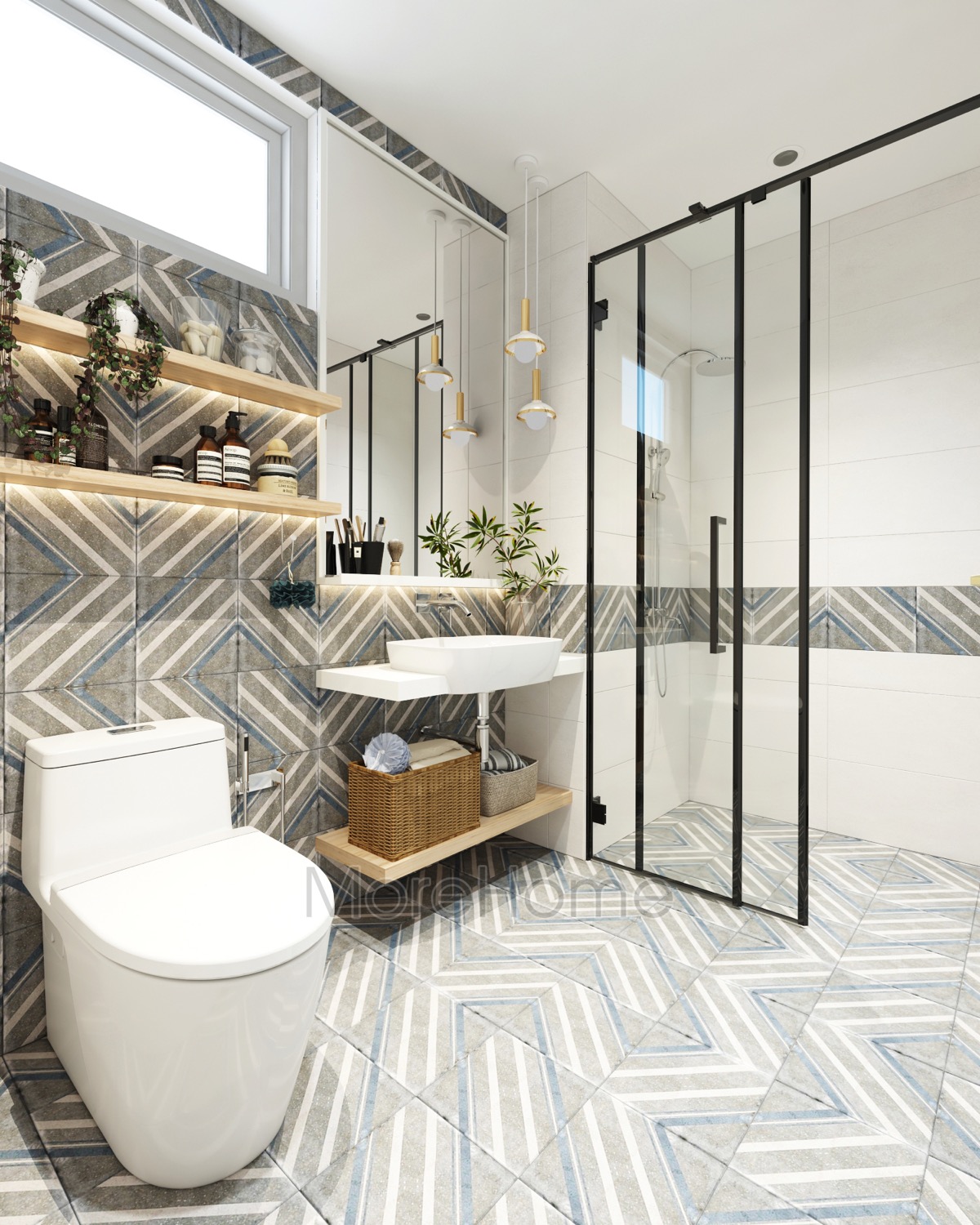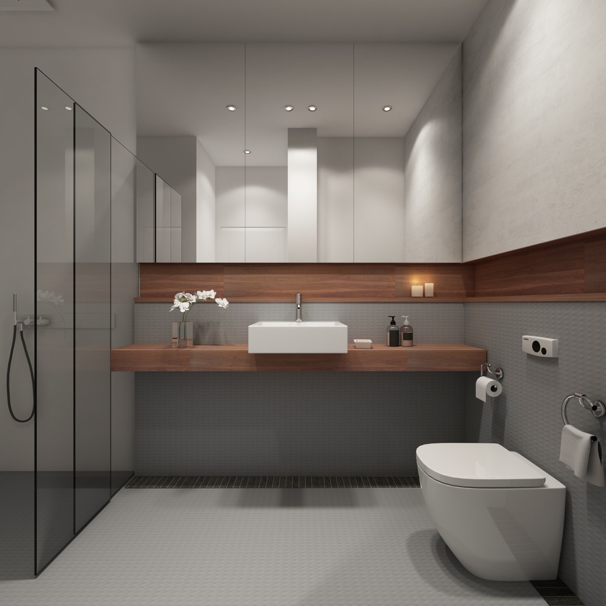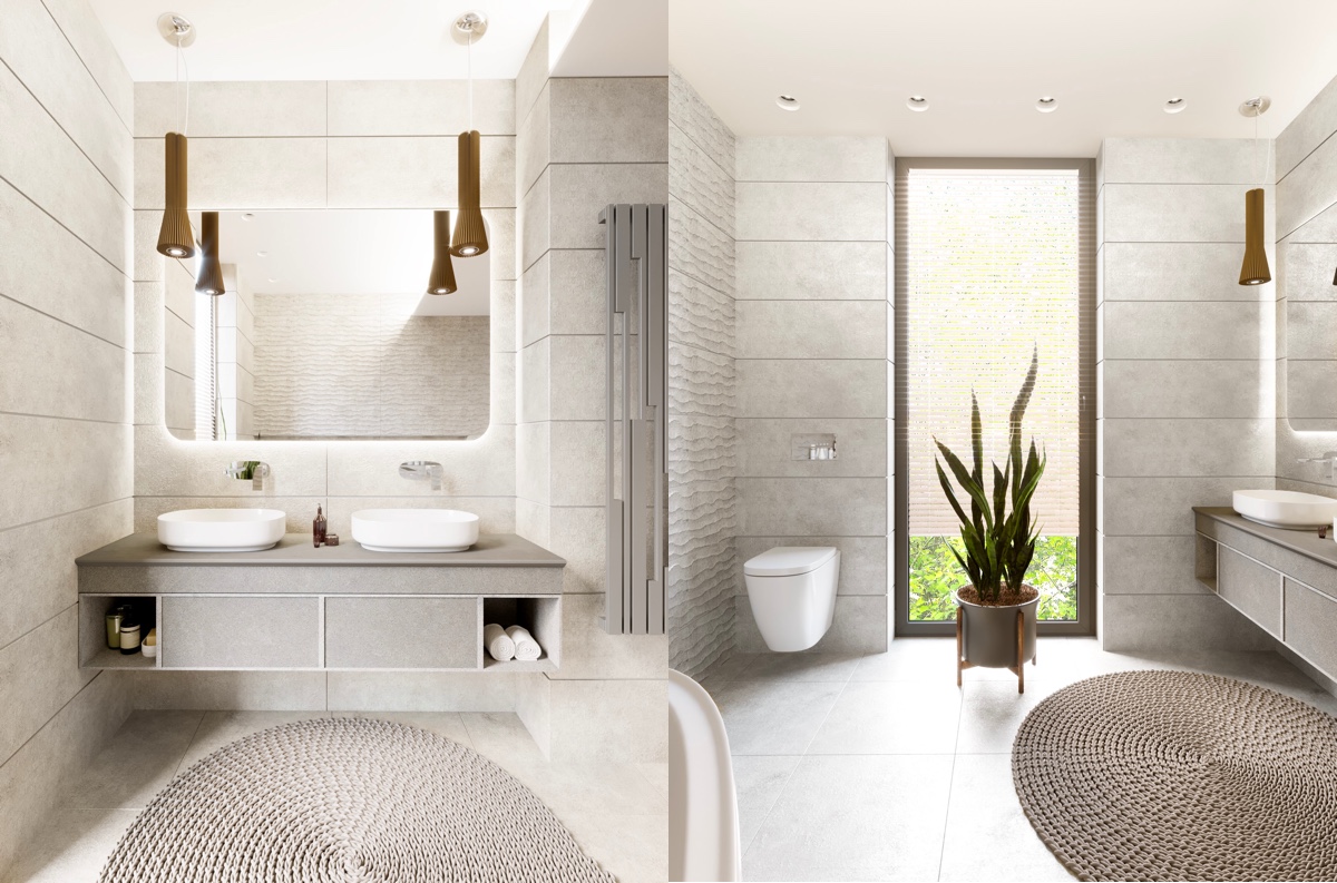 ไอเดียการตกแต่งวันนี้คือการ ตกแต่งห้องน้ำ ด้วยโทนสีเทาและขาว ที่ดูทันสมัยและยังมีความเรียบง่ายให้ความรู้สึกเงียบสงบและผ่อนคลาย