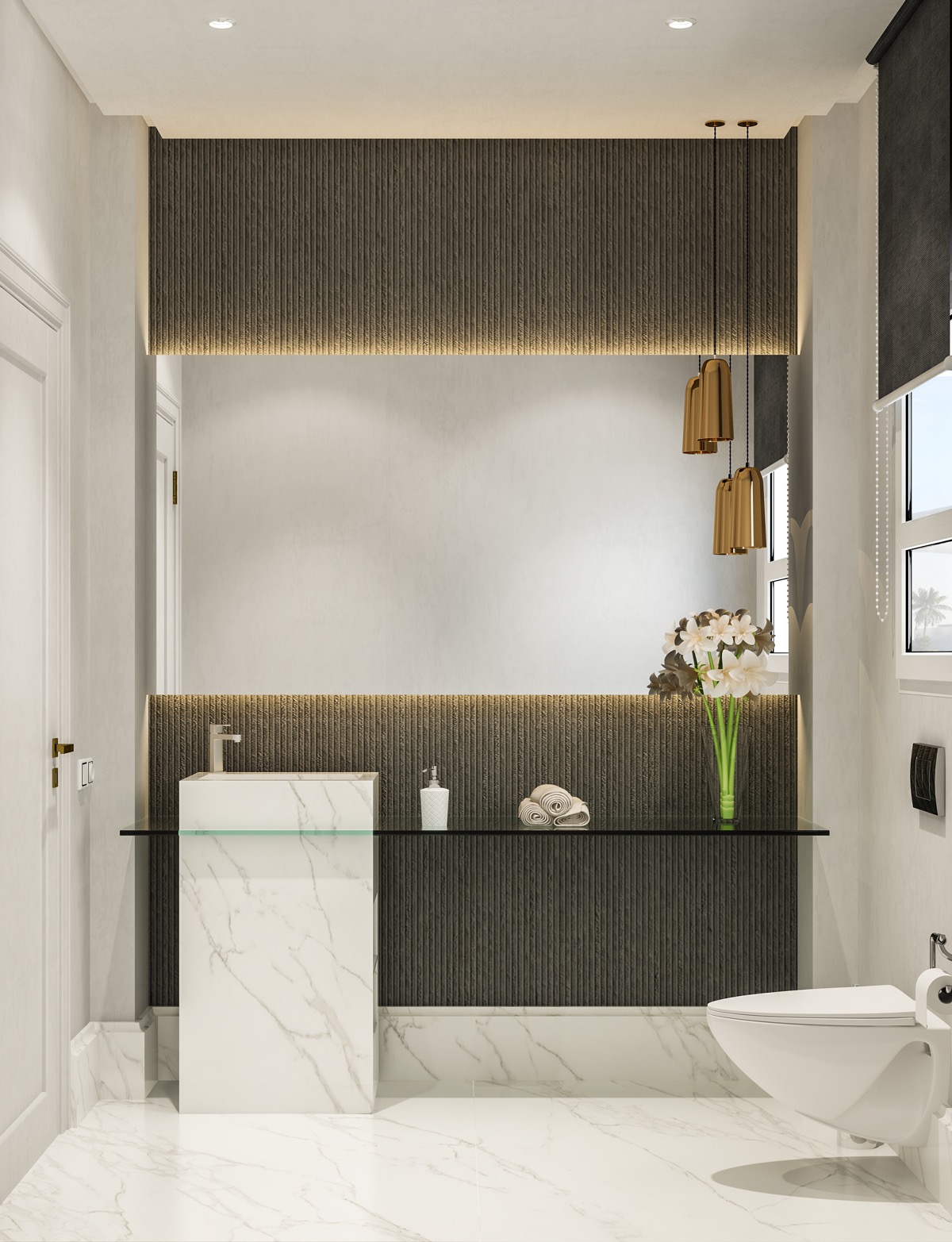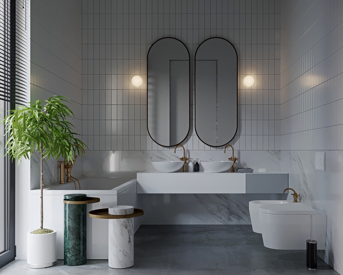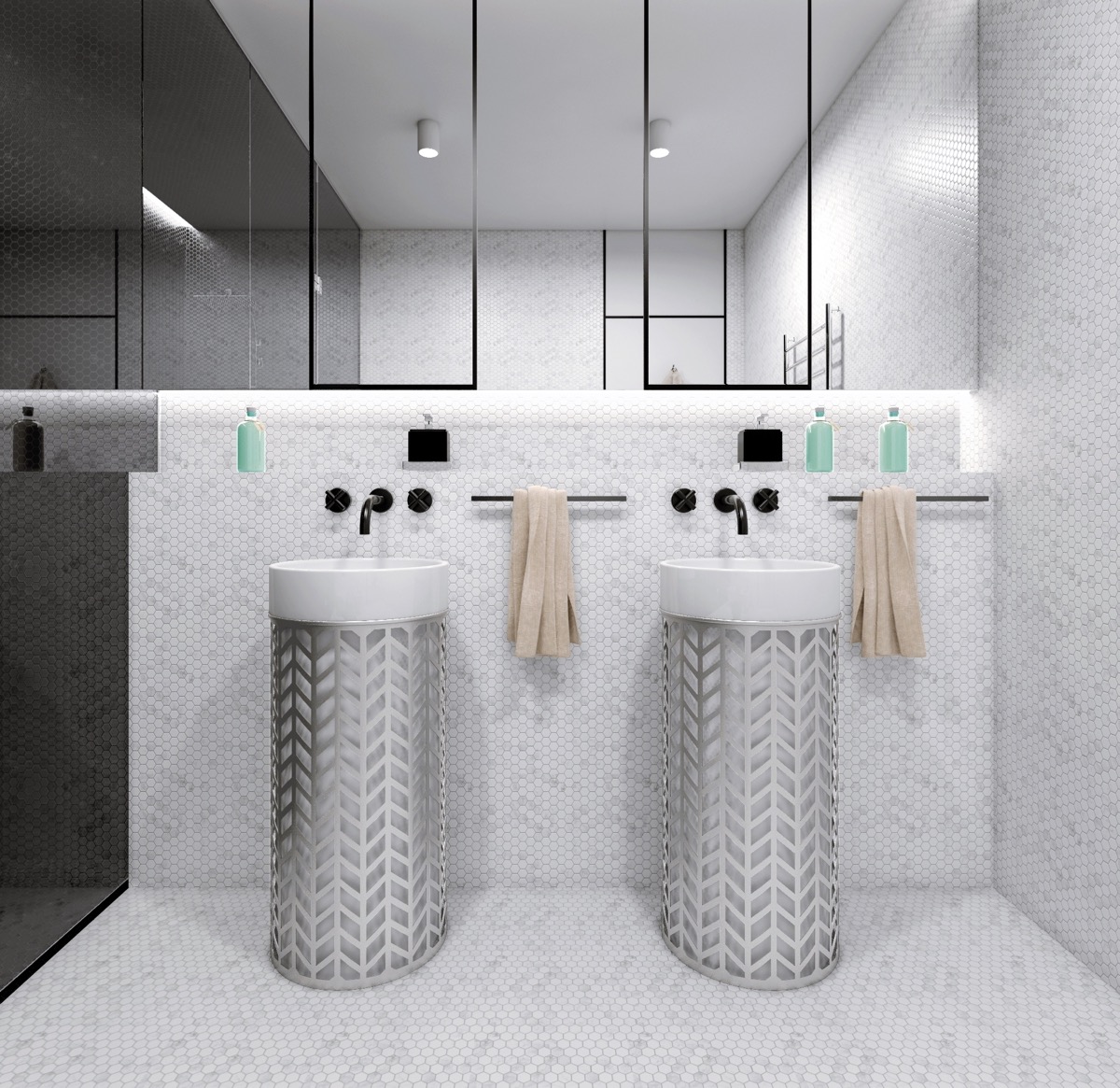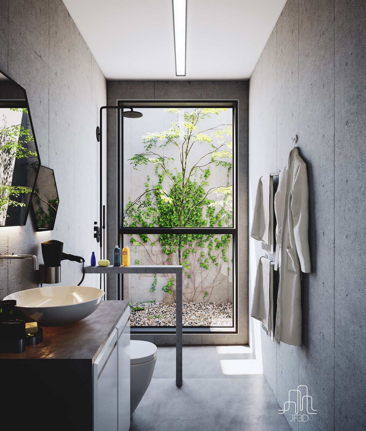 ไอเดียการตกแต่งวันนี้คือการ ตกแต่งห้องน้ำ ด้วยโทนสีเทาและขาว ที่ดูทันสมัยและยังมีความเรียบง่ายให้ความรู้สึกเงียบสงบและผ่อนคลาย