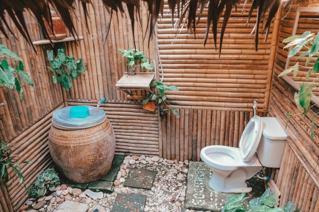 สำหรับไอเดียสุดท้ายนี้ก็เหมาะกับคนไทยอย่างเราที่ชื่นชอบในความเป็นธรรมชาติมาก ๆ ค่ะ โดยเขาจะเน้นไปที่การใช้ภูมิปัญญาเกี่ยวกับไม้ไผ่ในการทำเป็นห้องน้ำกลางแจ้งออกมาซึ่งก็สามารถวางอุปกรณ์ต่าง ๆ ได้อย่างครบครัน แถมยังมีความสวยงามอย่างเป็นธรรมชาติอีกด้วย