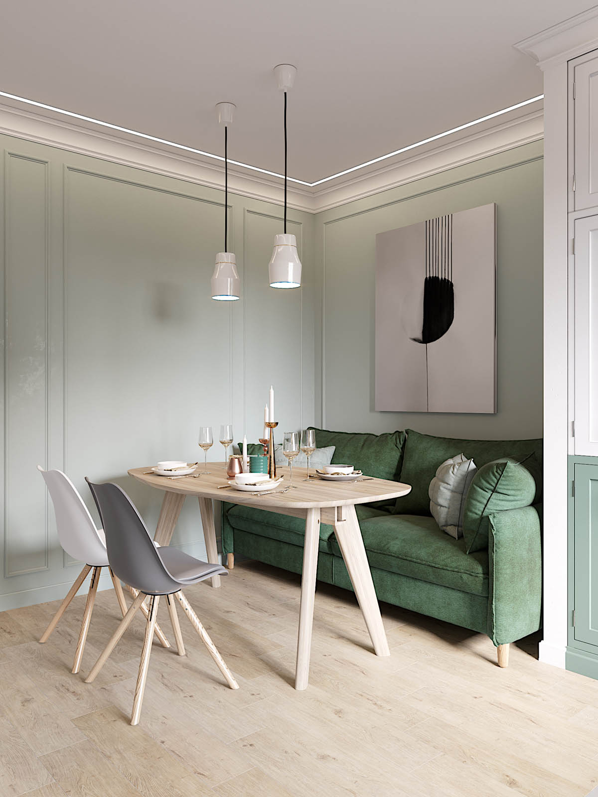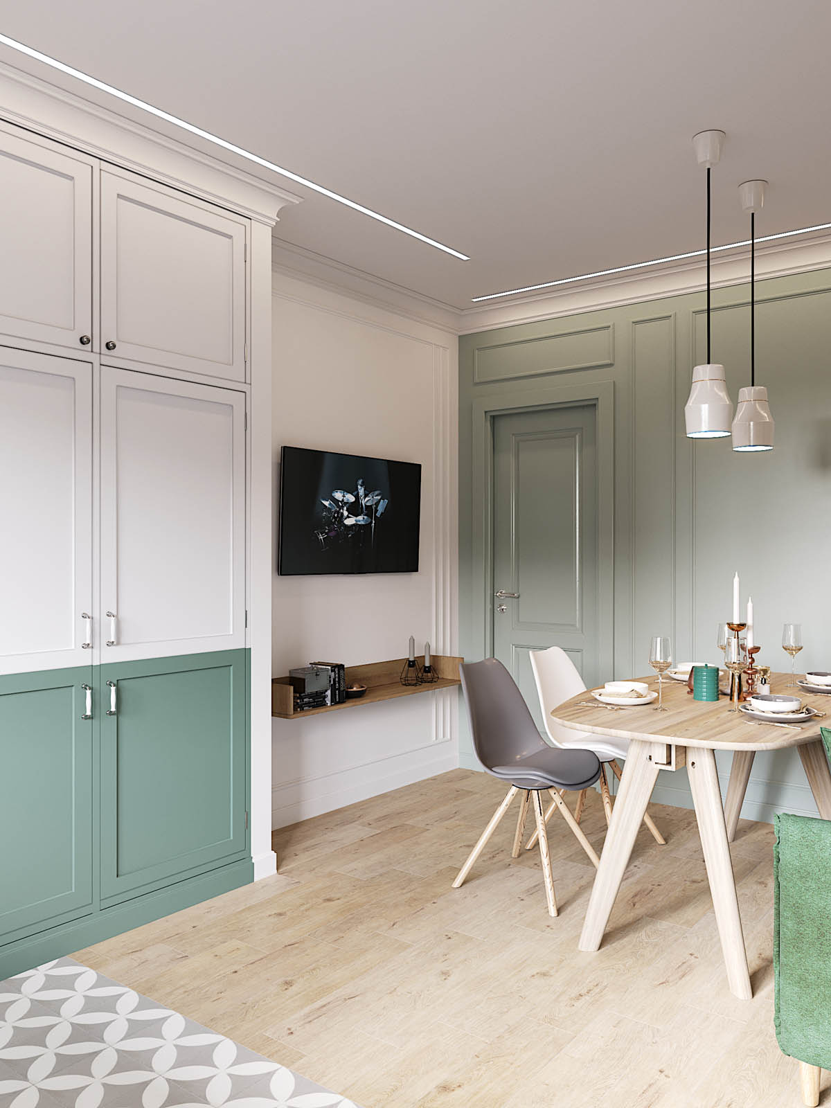 สำหรับไอเดียการตกแต่ง บ้านโทนสีเขียว วันนี้จะมานำเสนอแรงบันดาลใจการตกแต่งสไตล์สแกนดิเนเวีย ซึ่งอพาร์ทเม้นนี้ตั้งอยู่ที่เมือง Saint-Petersburg รัสเซีย ซึ่งความต้องการของเจ้าของห้องนั้นบอกว่า ต้องการห้องนอนเดียวของลูกชายและห้องน้ำที่แยกส่วนจากอพาร์ตเมนต์ เก็บของได้สะดวกมีที่นอนสำหรับแขก ซึ่งผู้ออกแบบ Cartelle Design ได้ออกแบบในสไตล์สแกนดิเนเวียเรียบง่ายด้วยโทนสีเขียวดูสงบและอ่อนโยน